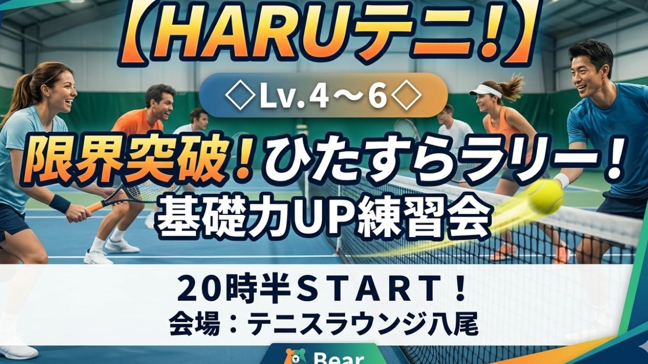 【HARUテニ!】◇Lv.4~6◇限界突破!ひたすらラリー!基礎力UP練習会【テニスラウンジ八尾】