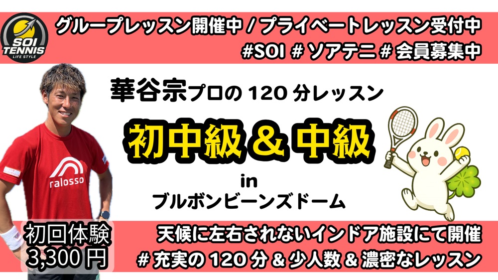ソアテニ(華谷宗プロ)主催のグループレッスンです🎾