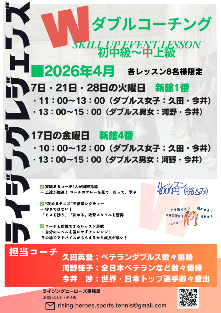 ⭐︎自己戦績も指導実績もあるコーチが2人でダブルスレッスンを行います。