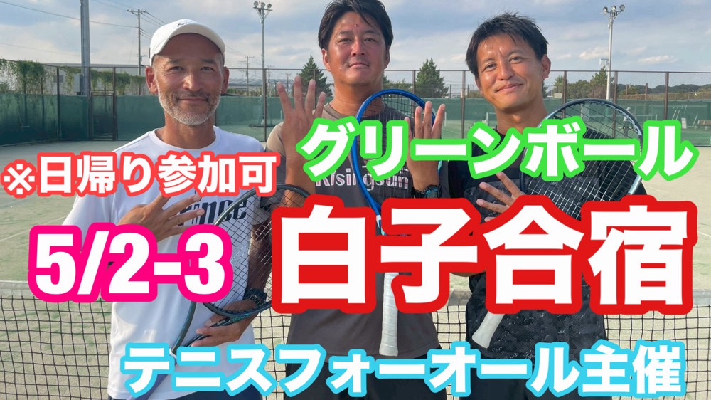 皆様、こんにちは。この度、練習・トレーニングをメインとしたテニスフォーオール主催白子グリーンボール強化合宿を開催致します。本合宿では、参加選手一人ひとりの身体の使い方の改善を図り、テニスに必要な動き・基礎テニス能力の練習を行っていきます。
