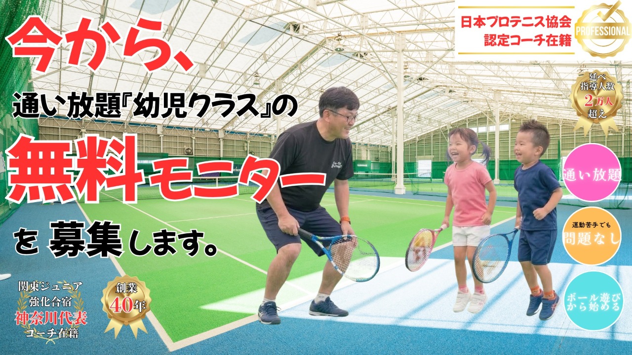 【通い放題の幼児クラスに無料招待❗️】お子様がテニスに触れる第一歩をお任せください!