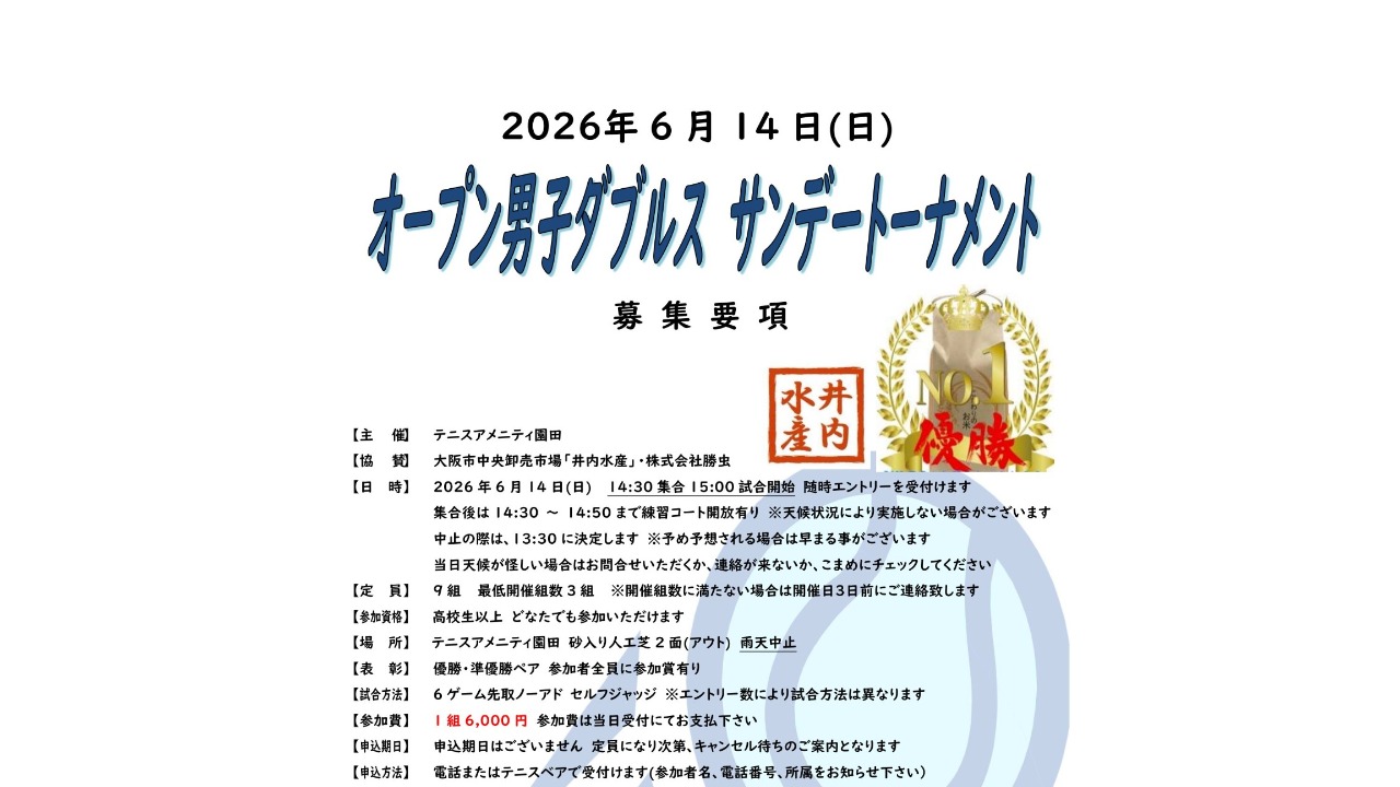 【テニスアメニティ園田】オープン男子ダブルス大会