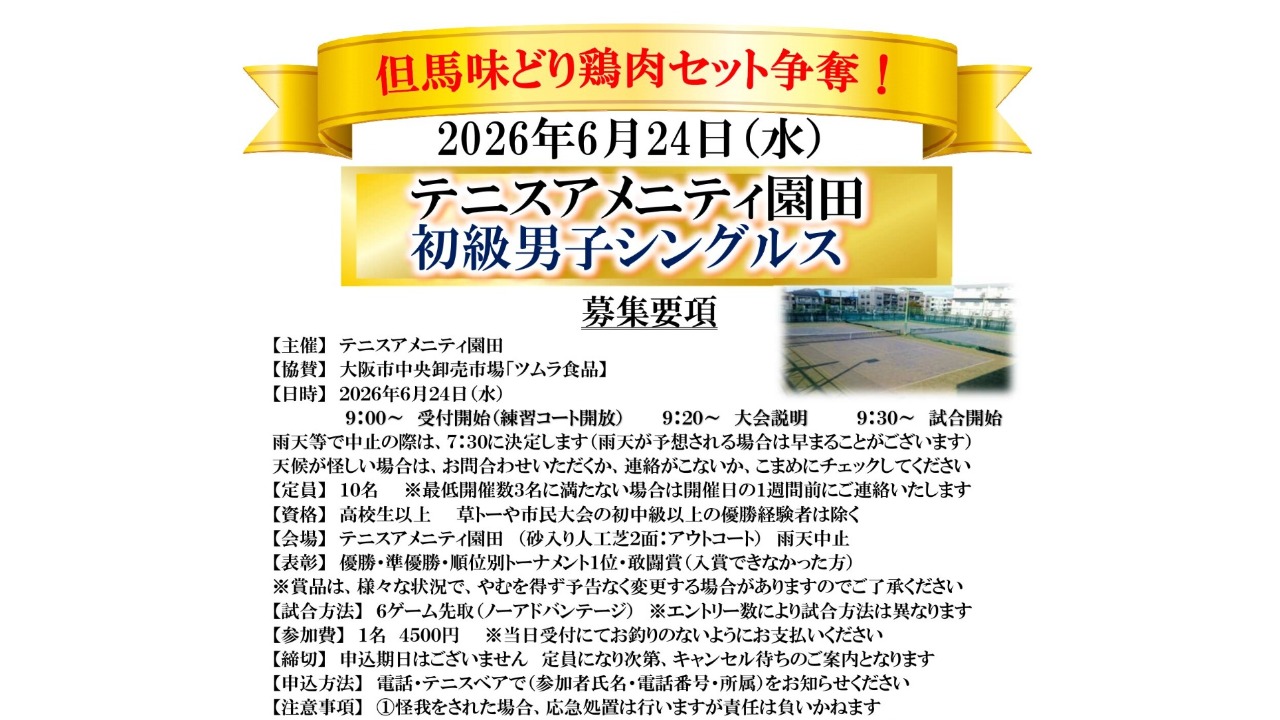 【市場直送!ブランド但馬味どり 鶏肉セット争奪!】初級男子シングルス大会 テニスアメニティ園田
