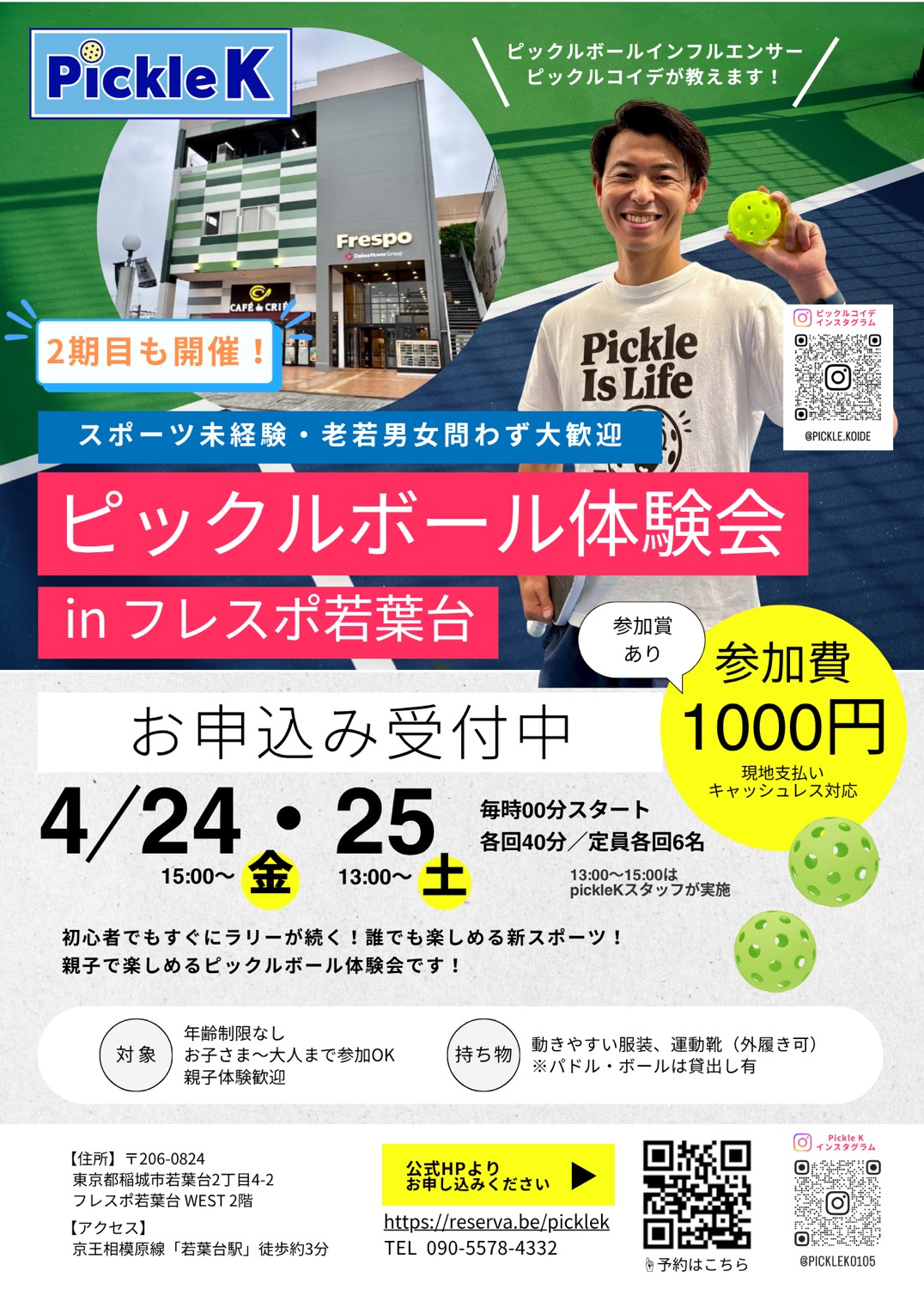 今回は、フレスポ若葉台のピックルボール専用コートで体験できる特別な機会。