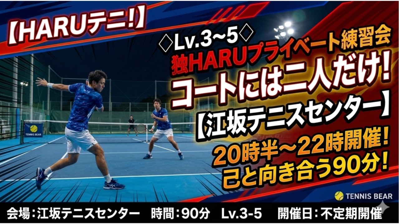 【HARUテニ!】◇Lv.3~5◇コートには二人だけ!独HARUプライベート練習会【江坂】