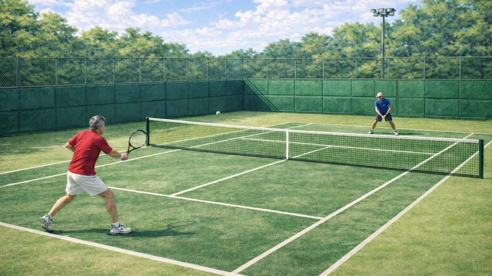 主催者含めて4名でシングルスの試合(1ポイント交代のダブルマッチ)を行います。