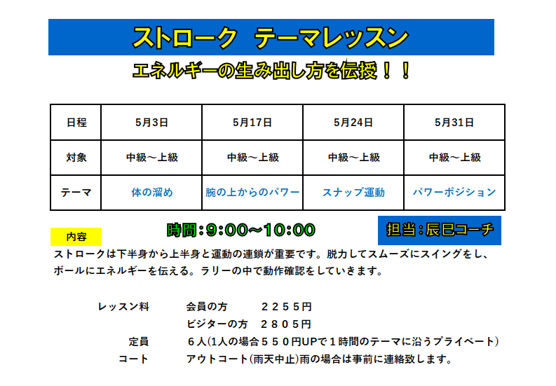 ★ 日曜日 ストローク テーマレッスン ★