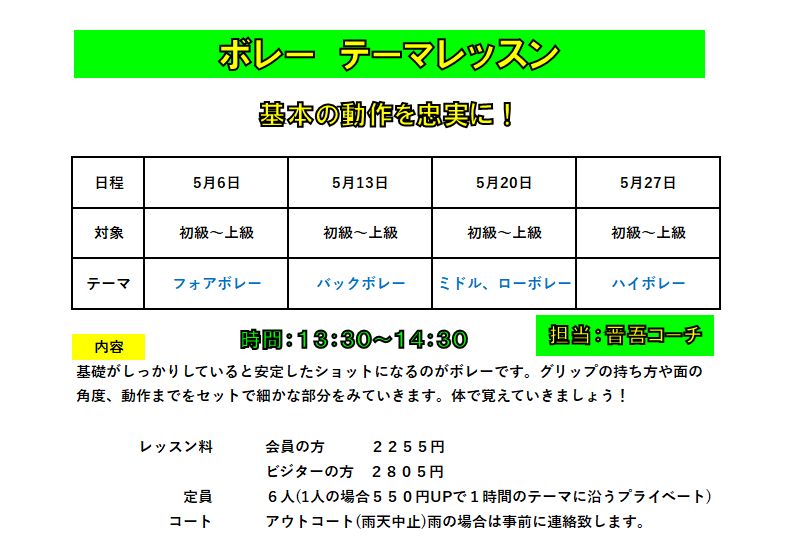 ★ 水曜日 ボレー テーマレッスン ★
