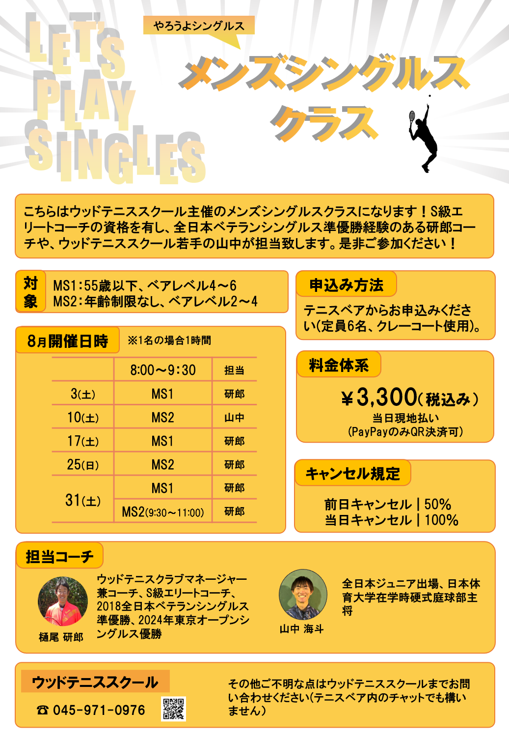 こちらはウッドテニススクール主催のメンズシングルスクラスとなります!