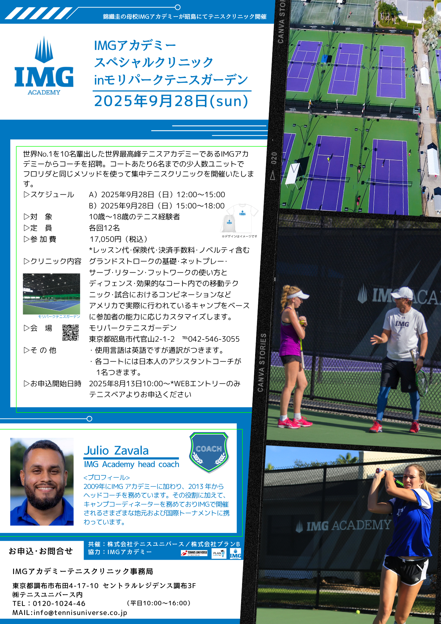 《10歳~18歳対象》IMGアカデミー スペシャルクリニック9/28(日)12:00-15:00