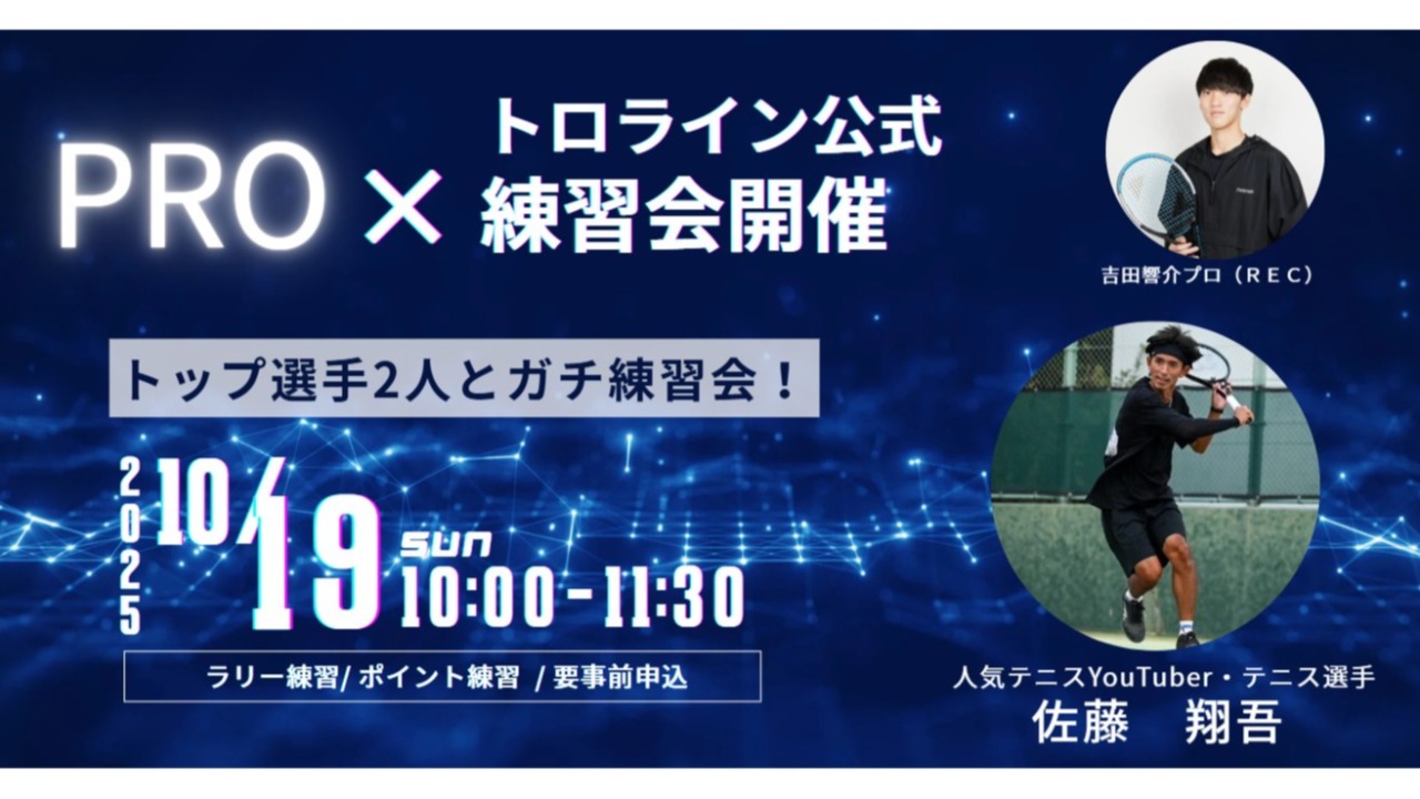 テニスYouTuberの『佐藤翔吾選手』と、今年4月からプロに転向した『吉田響介選手』との少数の練習会です。