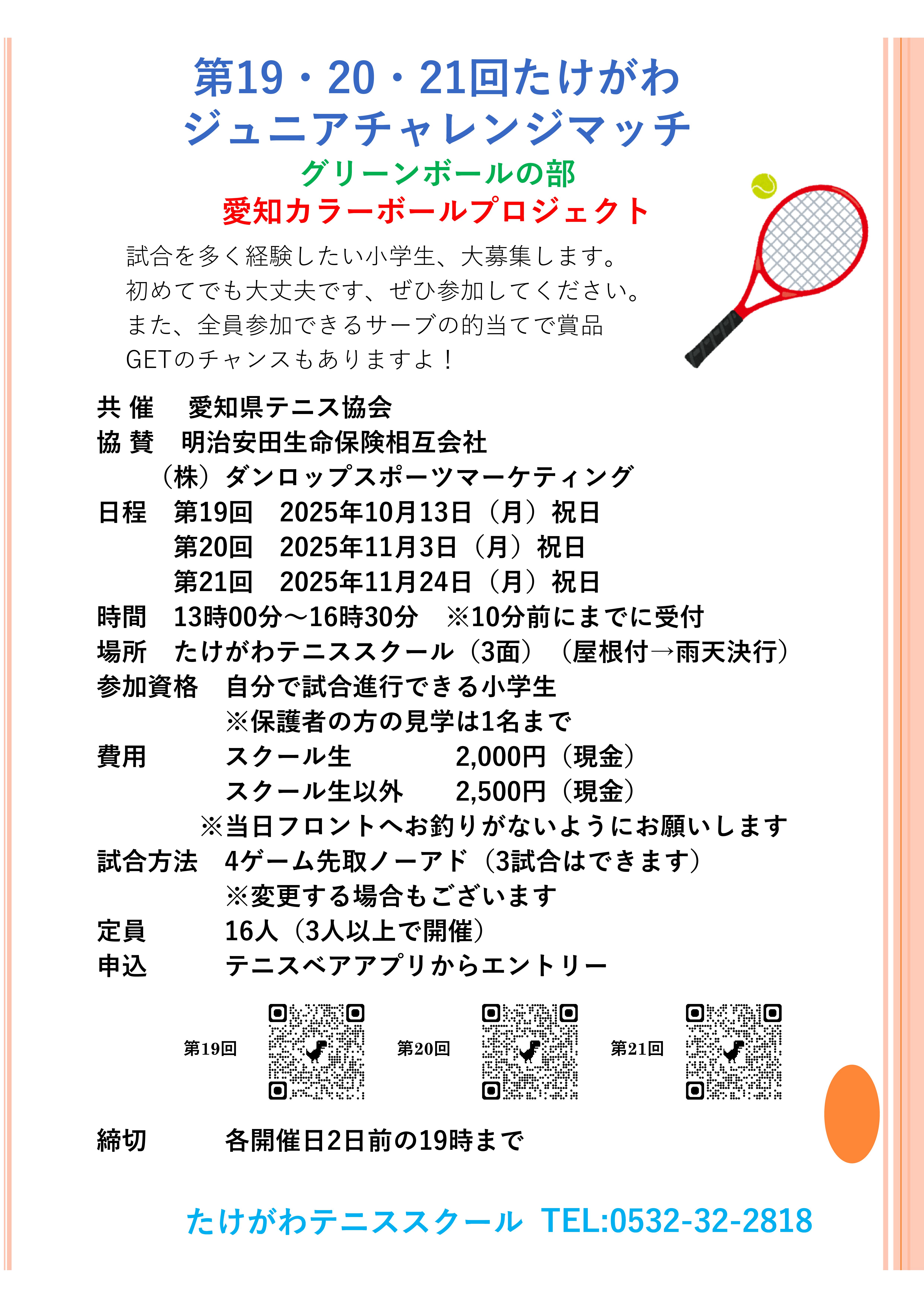 ※ご不明な点がございましたら、たけがわテニススクール0532-32-2818までお問い合わせください。